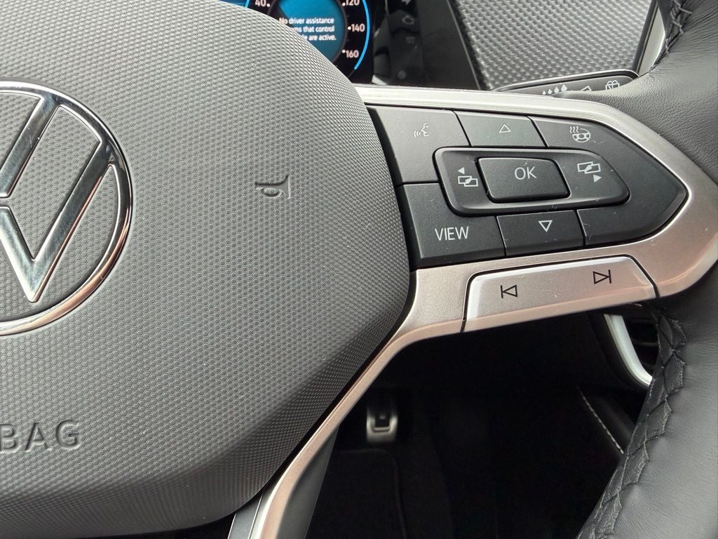 The SEL Premium R-Line interior is refined and well equipped with premium leather upholstery, heated and ventilated front seats, heated second-row seats, a heated steering wheel, memory settings, and power-adjustable driver and passenger seats. Additional comfort and convenience features include a panoramic sunroof, hands-free power liftgate, remote start, multiple zone automatic climate control, rear window defroster, 120-volt power outlet, and a universal garage door controller.