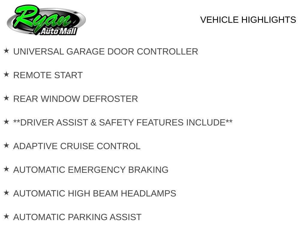 - **DRIVER ASSIST & SAFETY FEATURES INCLUDE**