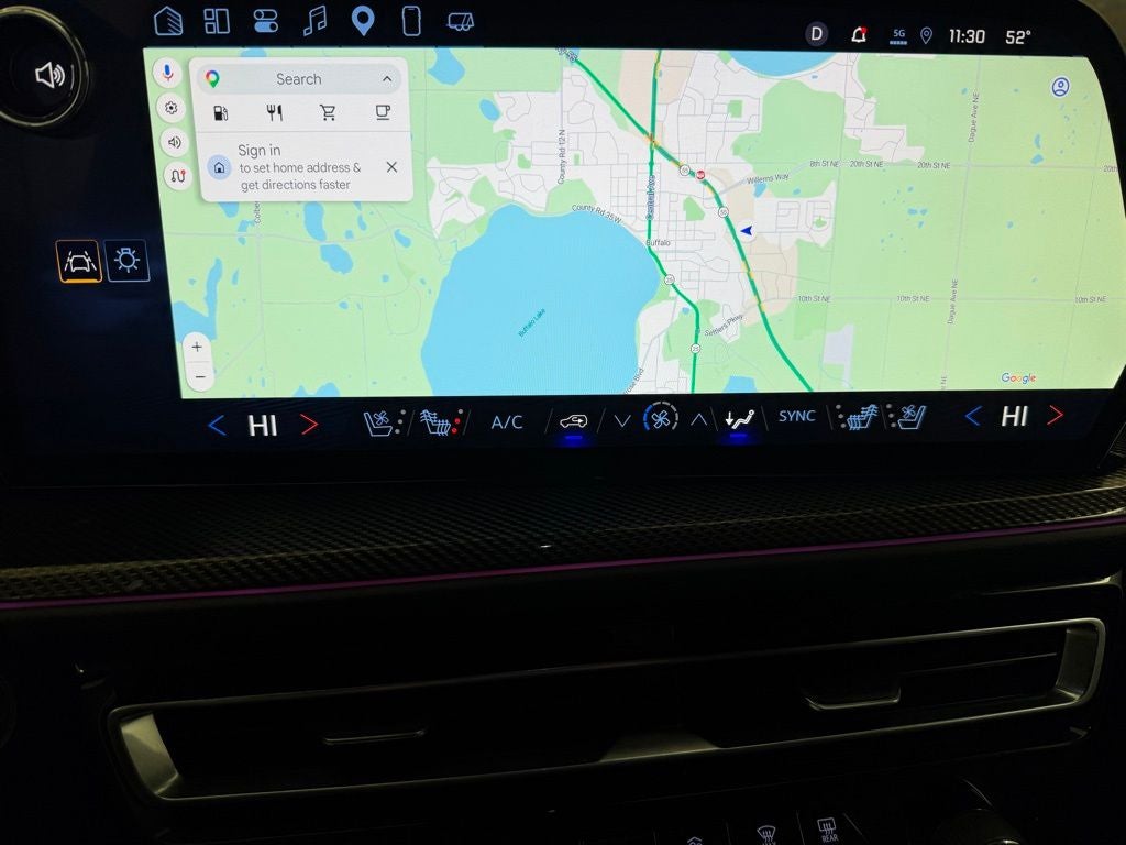 Technology is a highlight with a large 17.7-inch touchscreen display featuring Google built-in navigation, wireless Apple CarPlay and Android Auto, 4G LTE Wi-Fi connectivity, wireless charging, and a premium Bose sound system. Additional features such as remote start, a universal garage door controller, rear window defroster, and a 120-volt outlet add everyday usability.
