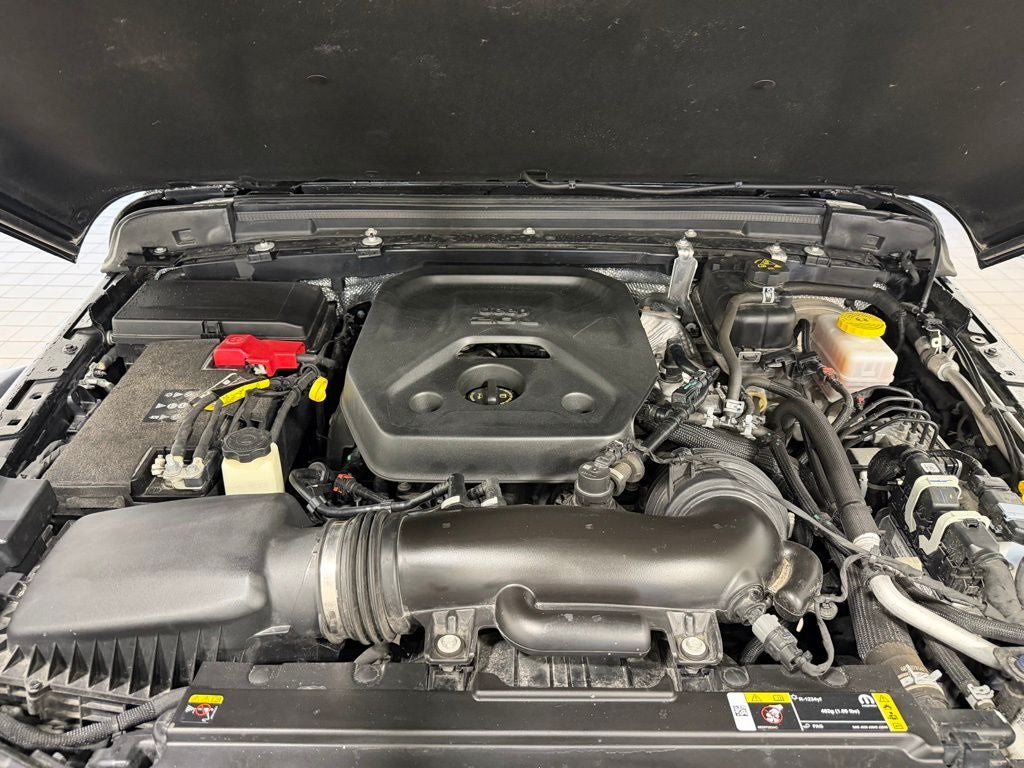 This Wrangler is also equipped for added utility with auxiliary switch controls and a Class II receiver hitch, making it ready for accessories, towing, or trail gear. Exterior upgrades including rock rails, deep tinted glass, and 17-inch machined aluminum wheels with black pockets give it a bold, functional look.