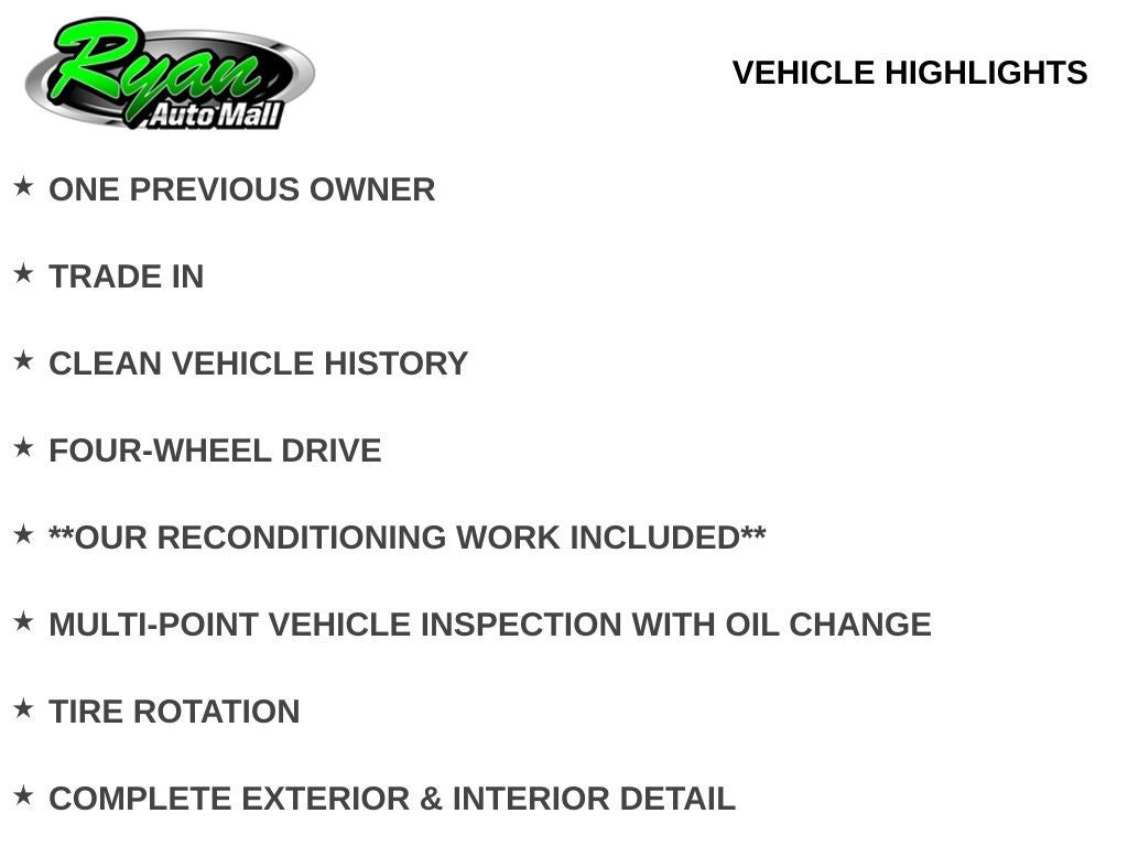 Every effort has been made to offer current and accurate information to our users, but errors can occur. Ryan Auto Mall assumes no liability or responsibility for any errors or omissions in the content contained on this website. Prices are subject to change without notice.